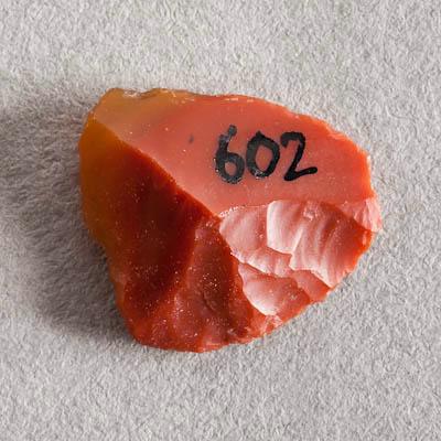Остроконечник. Кремень красного цвета, с полупрозрачным медовым вкраплением.