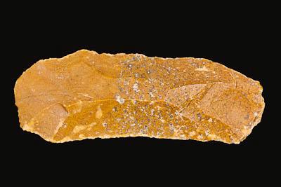 Каменное орудие. Кремень жёлто-песочного цвета с мелкими округлыми белыми включениями.